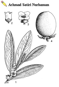 | Diospyros malabarica (Desr.) Kostel. var. malabarica. - 1, branch with female flowers; 2, male flower; 3, female flower; 4, fruit |
