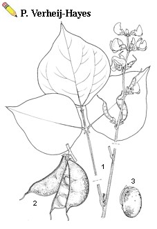 | Lablab purpureus (L.) Sweet - 1, flowering branch with young fruits; 2, fruits; 3, seed |