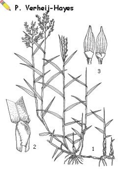 | Panicum repens L. - 1, habit flowering plant; 2, ligule; 3, spikelet in two views. |