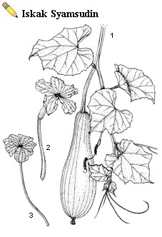 | Lagenaria siceraria (Molina) Standley - 1, flowering and fruiting shoot; 2, female flower; 3, male flower |