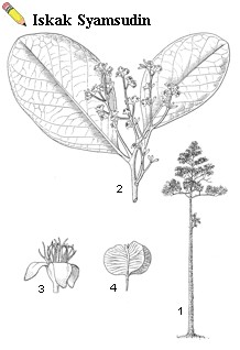 | Combretocarpus rotundatus (Miq.) Danser – 1, tree habit; 2, flowering twig; 3, flower; 4, fruit. |
